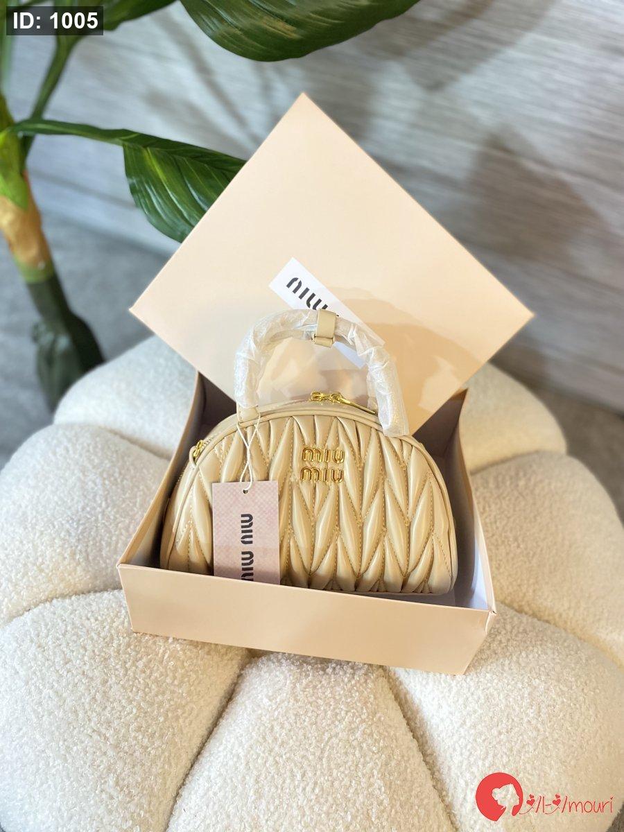 حقيبة ميو ميو مختومه بلون البيج مع علبه