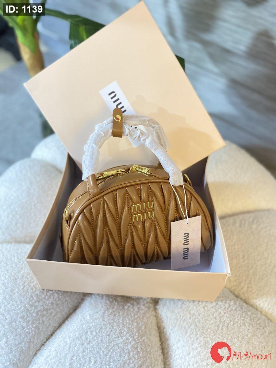 شنطة ميو ميو قاعده 22 سم بلون العسلي مع علبه