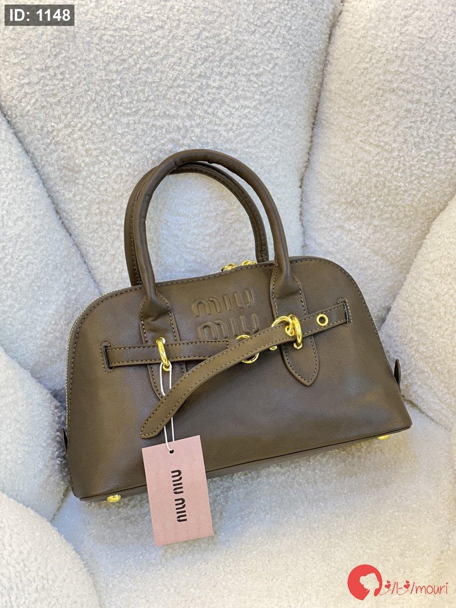 شنطة ميو ميو قاعده 22 سم بلون العسلي مع علبه