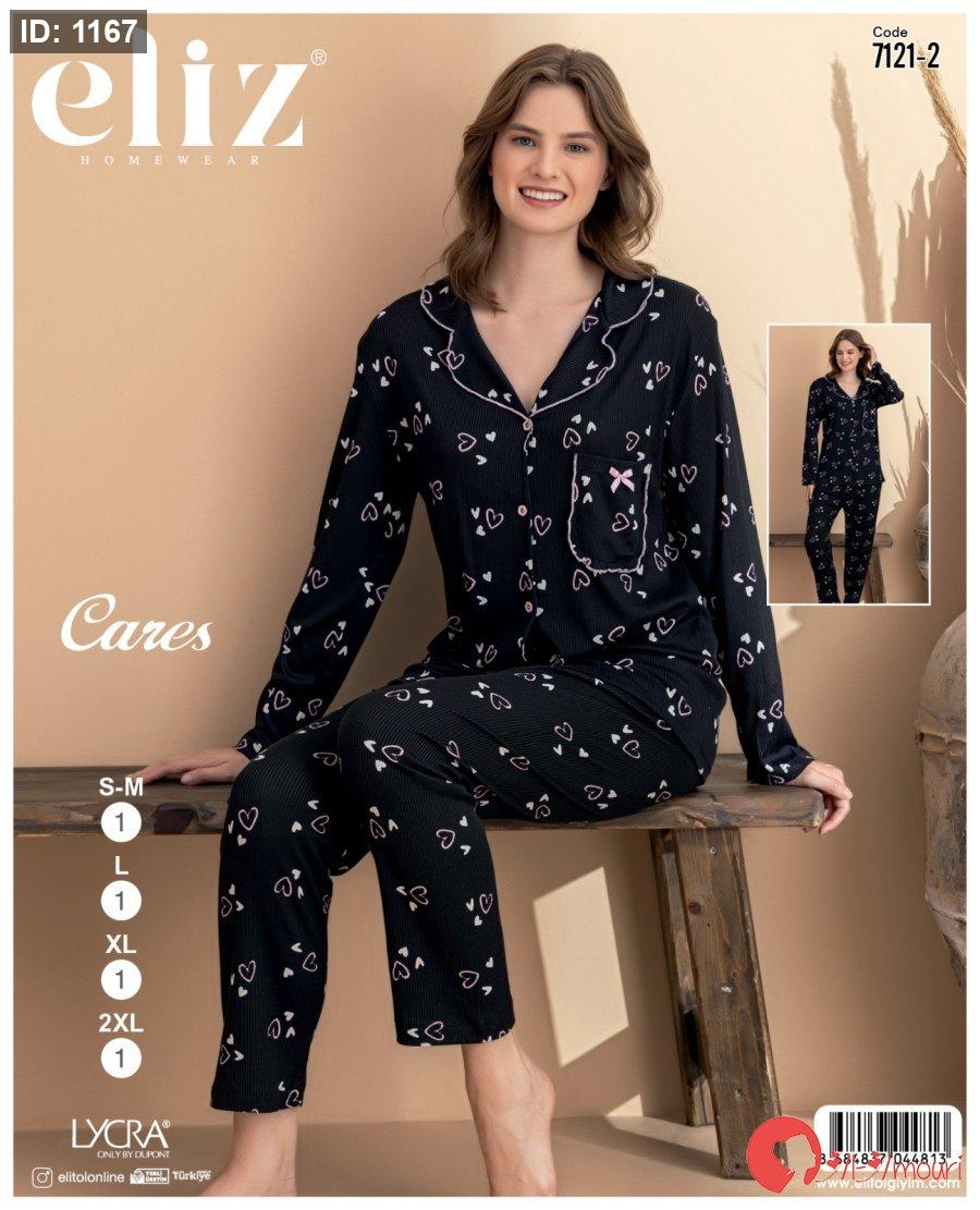 بيجامة بزرار قلوب ارضيه لون اسود🖤