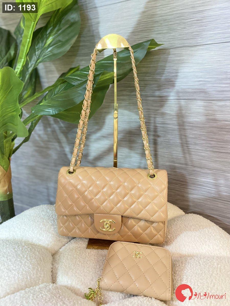 حقيبة شانيل كلاسيك فلاب جلد املس قاعدة 25 سم هاردوير ذهبي مع علبة✨