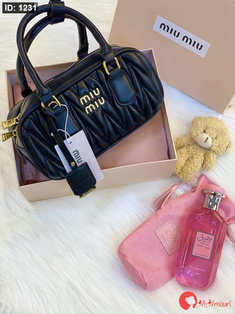 حقيبة ميو ميو قاعدة 22 سم لون أسود مع علبه