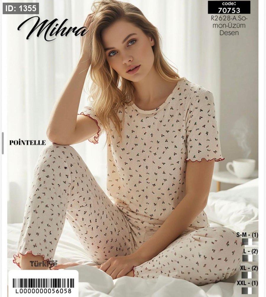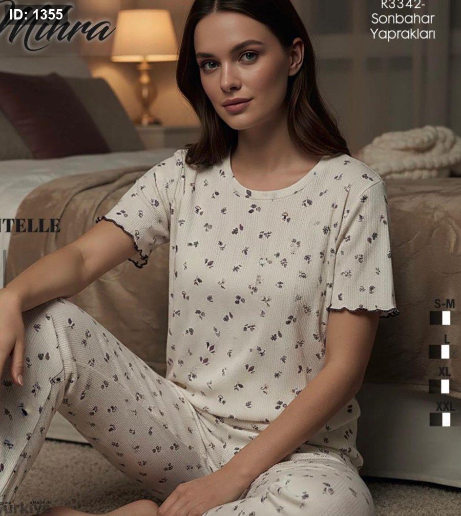 بيجامة نص كم نقشات هاديه
