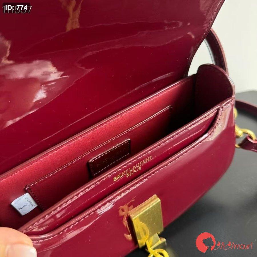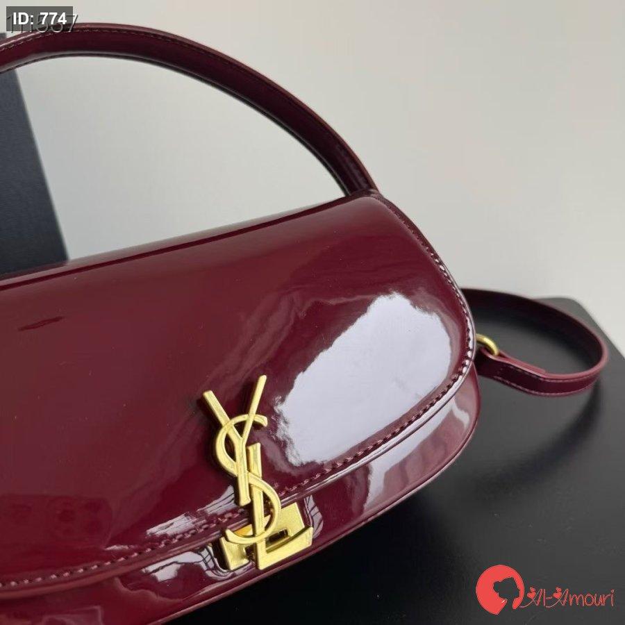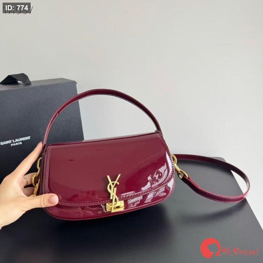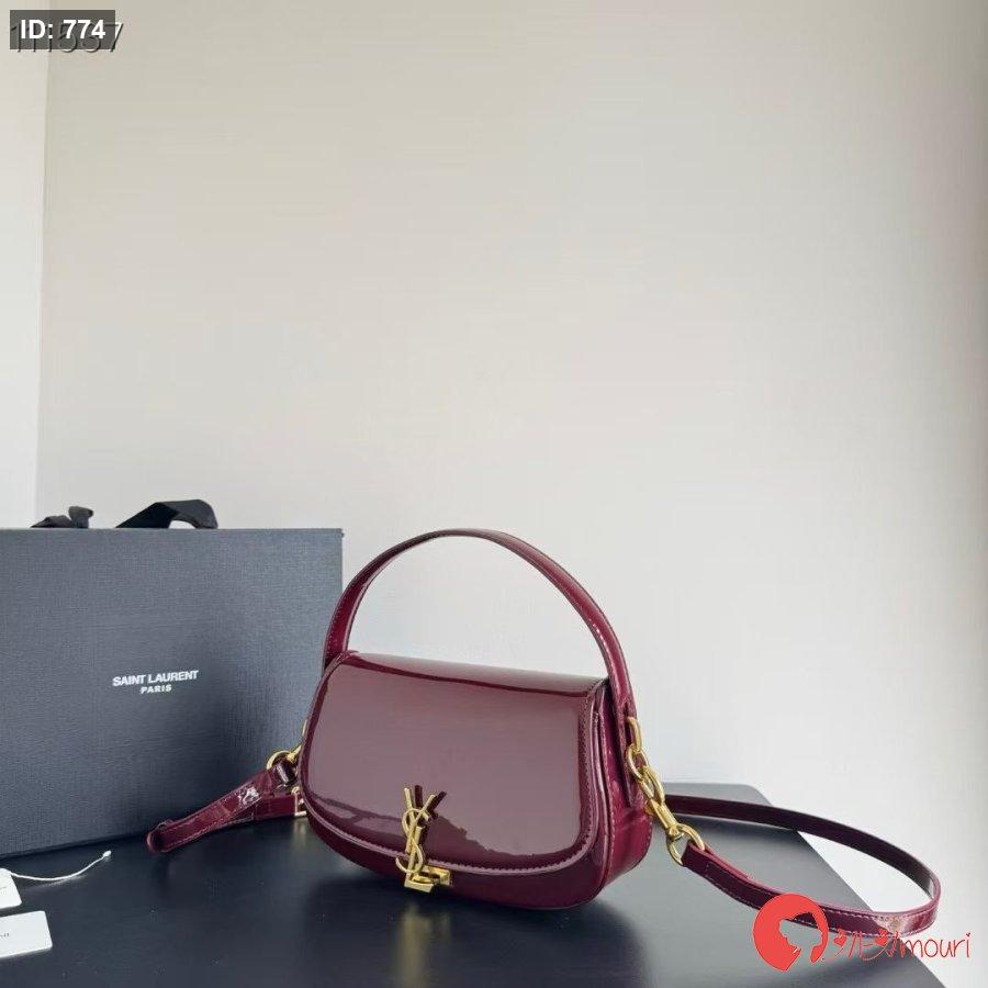 حقيبة YSL مختومه بلون البرغندي قاعدة 25 سم مع علبه