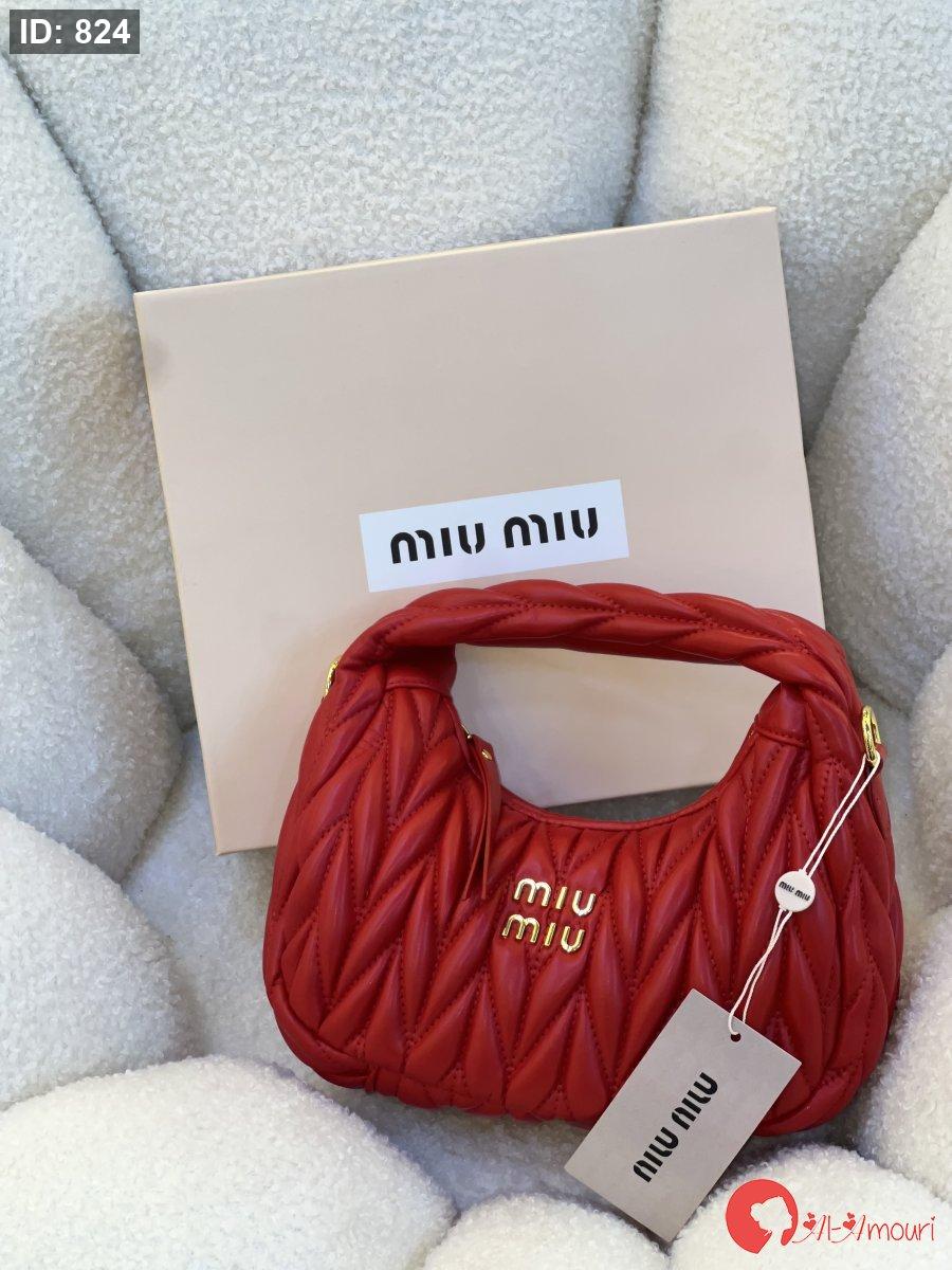 حقيبة ميو ميو مختومه بلون الأحمر مع علبه