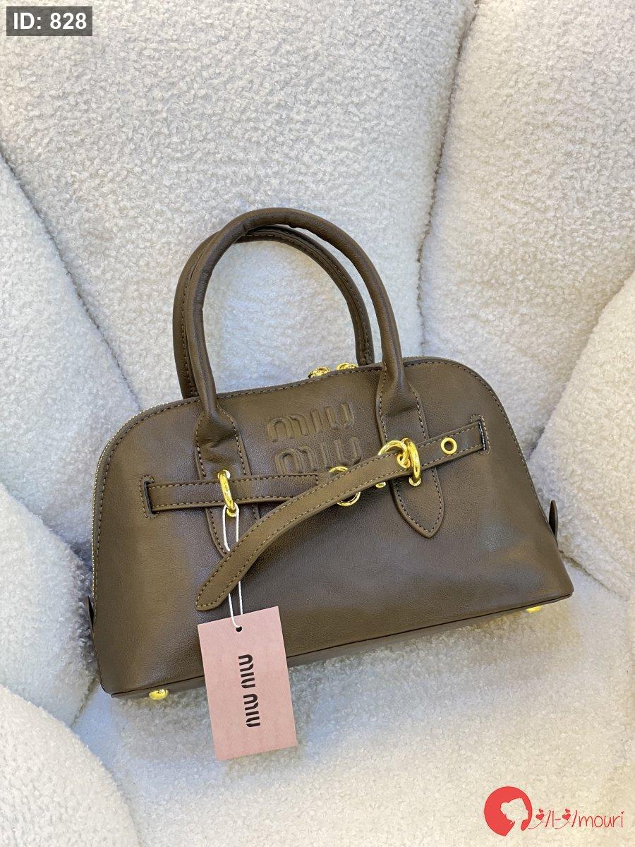 حقيبة ميو ميو مختومه قاعده 28سم جلد أملس بلون الزيتي