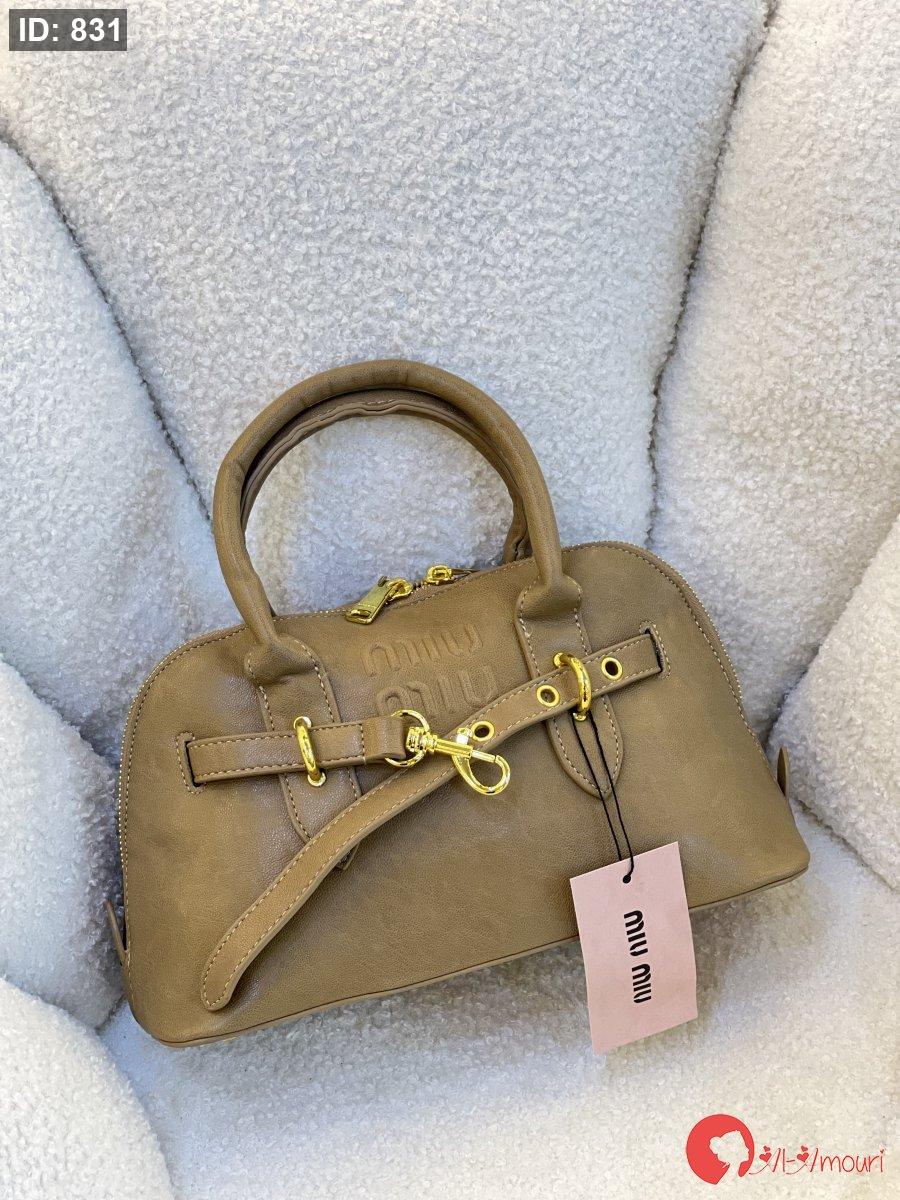 حقيبة ميو ميو مختومه قاعدة 28سم جلد أملس بلون البني