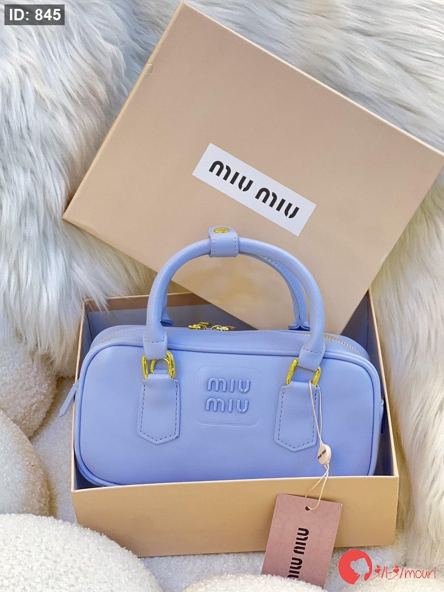 حقيبة ميو ميو مختومه قاعدة 22 سم بلون الأزرق مع علبه