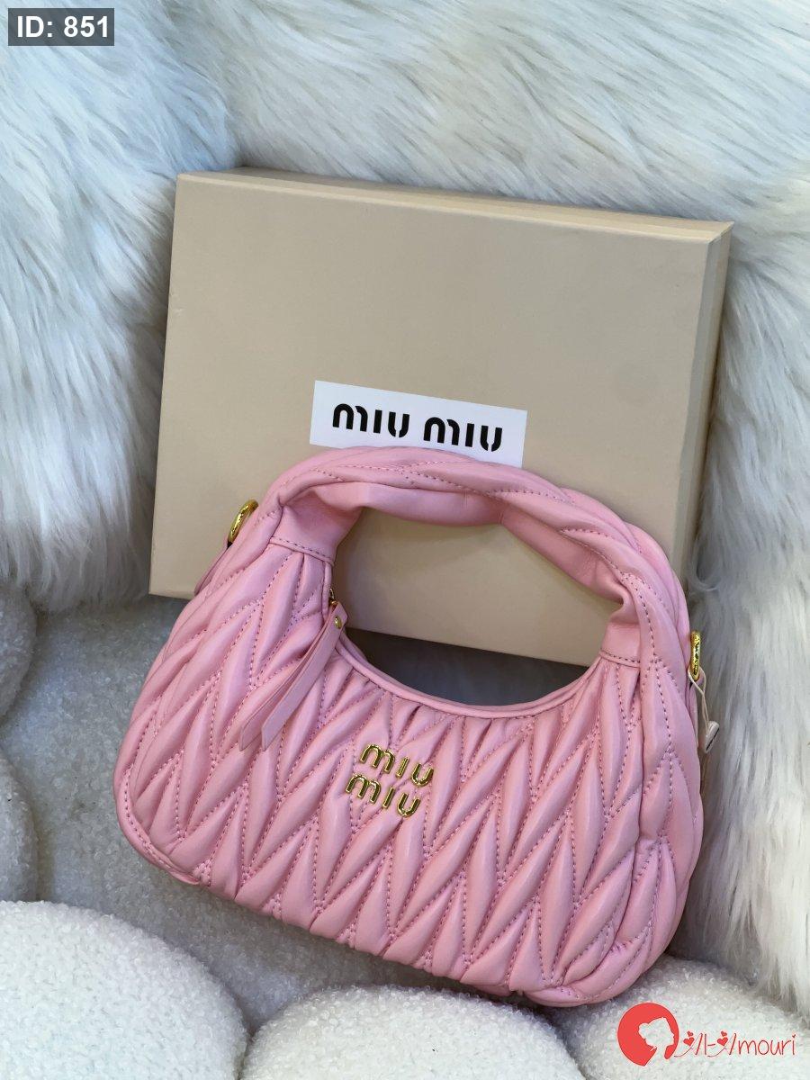 حقيبة ميو ميو مختومه قاعدة 25 سم بلون الزهر مع علبه