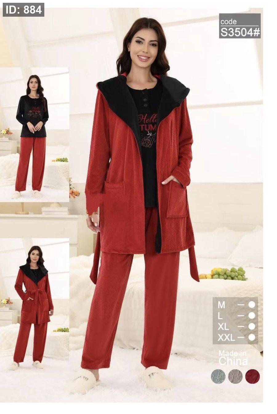 بيجامة 3 قطع مخمل